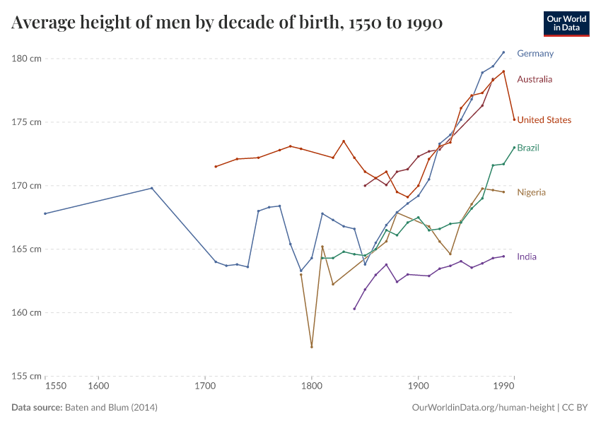 Average Height Of Men By Year Of Birth Our World In Data
